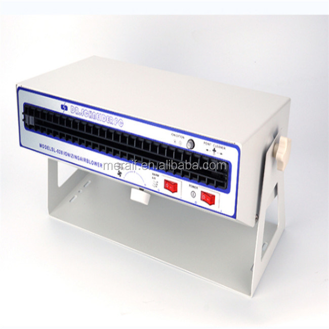 SL-028 ion blower is a kind of ion eliminator with high wind quantity and wide range.With short decay time, wide coverage and heating function, it is suitable for printing industry, electron industry, plastic industry, it is adjustable during the range of 70-120CFM, the ion balance voltage is 0V±10V.